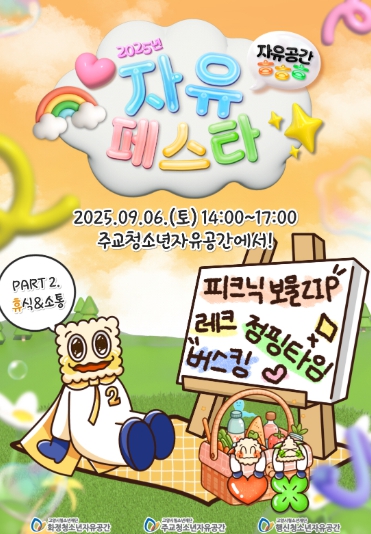 자유페스타는 ‘휴식과 소통’을 주제로, ▲마당 피크닉존 ▲버스킹 공연 ▲레크리에이션 ▲포토존 등 다채로운 프로그램으로 꾸며져, 청소년들이 서로의 문화와 경험을 나누는 시간을 제공한다.