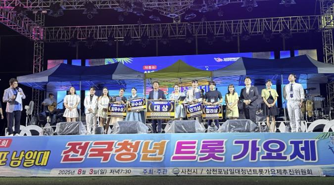 정영춘 추진위원장은 “빗속에서도 끝까지 함께 해주신 모든 분들께 진심으로 감사드리며 삼천포남일대청년트롯가요제가 젊은 예술인들의 등용문이자, 지역 대표 여름 문화축제로 더욱 성장할 수 있도록 지속적인 노력을 기울이겠다”고 말했다.