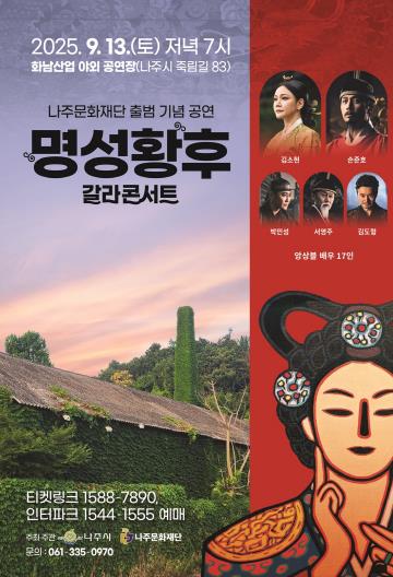 [뉴스노크=김인호 기자] 나주문화재단이 출범을 기념해 한국 창작 뮤지컬의 대표작 ‘명성황후 갈라콘서트’를 오는 9월 13일 개최하며 시민과 함께하는 문화공연의 새 지평을 연다.