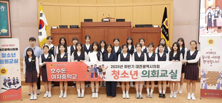 [뉴스노크=김인호 기자] 호수돈여자중학교 학생들이 16일, 대전시의회(의장 조원휘)를 방문해 하루 동안 시의회의 운영 과정을 직접 체험하는 뜻깊은 시간을 가졌다.
