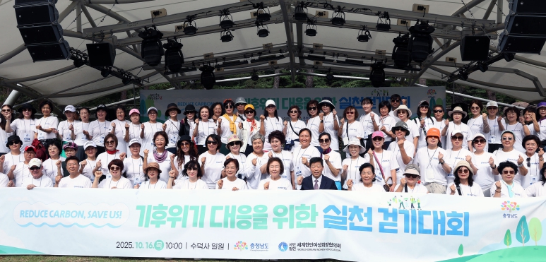 [뉴스노크=김인호 기자] 충남도와 세계한인여성회장협의회는 16일 예산 수덕사 일원에서 기후 위기에 대응하고 일상 속 친환경 실천을 독려하기 위한 ‘탄소중립 실천 걷기대회’를 개최했다.