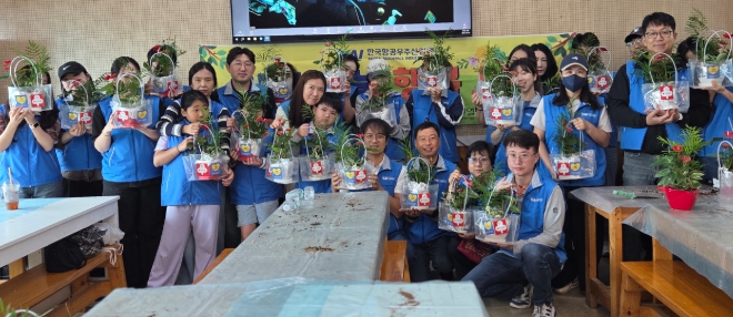카이 나눔봉사단 봉사자 30여 명은 실내에서 잘 자라는 인시리움과 테이블 야자, 호야를 심고 마사로 덮어 반려식물 화분을 만들었다.