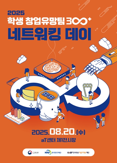 [뉴스노크=김인호 기자] 교육부는 8월 20일 에이티(aT)센터(서울)에서 한국청년기업가정신재단과 함께 ‘2025 학생 창업유망팀 300+ 만남의 날(네트워킹 데이)’를 개최한다고 밝혔다.