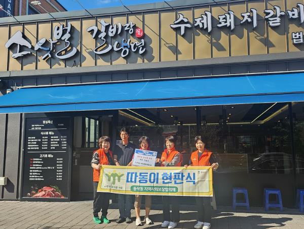 | ▲ 평택시 동삭동 지역사회보장협의체, ‘따동이’ 5호점 현판 전달 |