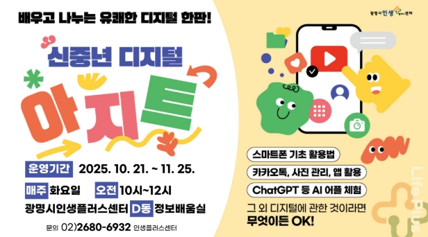 디지털 기기 활용에 어려움을 느끼는 시민은 별도 신청이나 비용 없이 광명시인생플러스센터 정보배움실을 방문해 스마트폰 기초 사용법과 생성형 인공지능(AI) 앱 활용 등 궁금한 내용을 1:1로 코칭받을 수 있다.