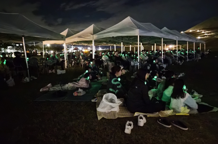 행사 참가자들은 무소음 헤드셋을 착용하여 야외 공간에서도 소음 없는 영화 관람 및 음악 감상을 통해 송학동 고분군 달빛 아래 홀로 있는 것 같은 몰입감을 경험할 수 있었다.