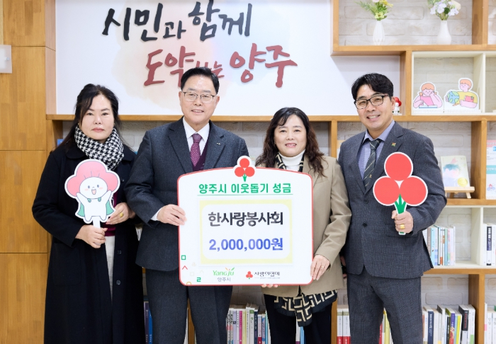 [뉴스노크=김인호 기자] 양주시가 16일 한사랑봉사회로부터 이웃돕기 성금 200만 원을 기탁받았다.