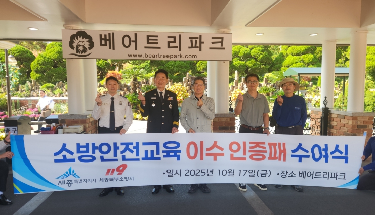 김전수 세종북부소방서장은 “베어트리파크의 적극적인 노력은 다른 기관의 모범이 될 것”이라며 “이번 인증을 계기로 안전 문화가 세종 전역으로 확산되길 기대한다”고 말했다