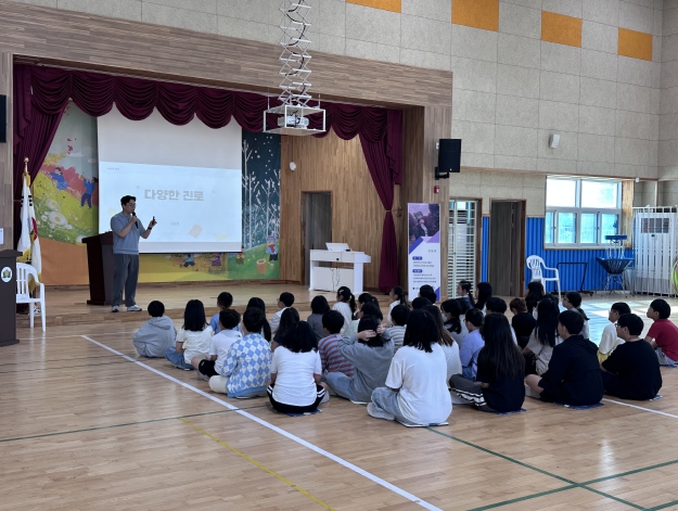 [뉴스노크=김인호 기자] 충청북도음성교육지원청이 주관하는 '사람책 진로코칭' 네 번째 이야기가 9월 24일 평곡초등학교에서 진행했다. 이번 강연은 은행원에서 교사, 그리고 다시 의대생이 된 김동현 강사가 '방황은 나침반이 된다'라는 주제로 자신의 특별한 진로 이야기를 전했다.