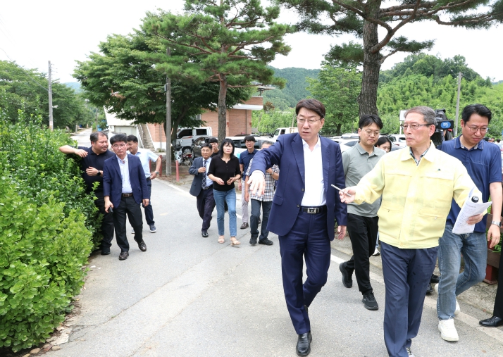 이날 방문은 우 시장이 최근 연이은 집중 호우로 침수 피해가 우려되는 가운데 완주군 소양면과 전주시 금상동 접경지역에서 추진 중인 재해위험개선지구 정비사업의 추진 상황을 살피고, 재해예방과 완주-전주 상생발전에 대한 주민들의 목소리에 귀를 기울이기 위함이다.