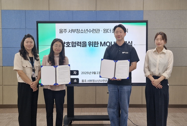 [뉴스노크=김인호 기자] 울주군시설관리공단(이사장 최인식) 서부청소년수련관은 9월 23일, 자원순환 및 환경 교육 활성화를 위해 ㈜원더플라스틱(대표 김민석)과 업무협약을 체결했다.