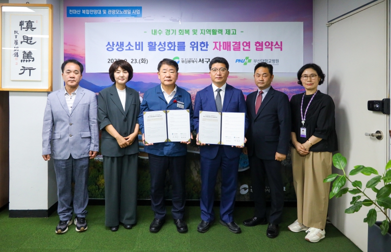 [뉴스노크=김인호 기자] 부산광역시 서구는 9월 23일, 부산대학교병원(병원장 정성운)과 ‘상생소비 활성화를 위한 자매결연 업무협약’을 맺고 지역 상생 협력에 나섰다.