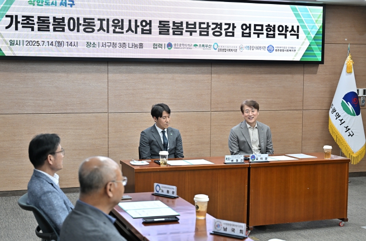 서구는 14일 서구청 나눔홀에서 김이강 서구청장을 비롯해 초록우산 어린이재단 변정근 광주지역본부장, 금호·시영·쌍촌종합사회복지관 관장 등이 참석한 가운데 가족돌봄아동 지원을 위한 업무협약을 체결하고 ‘광주 온(ON)돌봄’ 사업을 본격 추진한다.