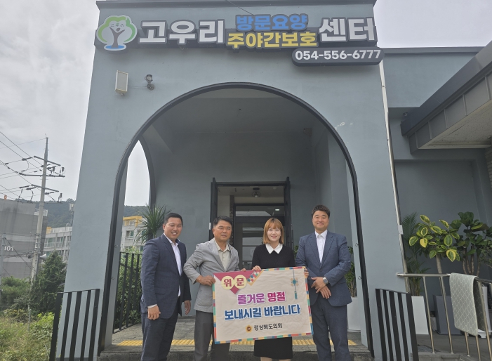 [뉴스노크=김인호 기자] 경상북도의회는 추석 명절을 맞아 경북도의원 및 의회사무처 직원이 각 일정별로 관내 구호·자선기관을 찾아 명절의 따뜻한 정을 나눴다. 24일은 경상북도의회를 대표해 김창기 도의원이 문경시 소재 고우리 주간보호센터를 찾아 경북도의회에서 준비한 위문품을 전달하고 관계자들을 격려했다.