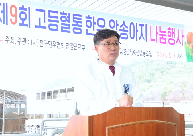 [뉴스노크=김인호 기자] 함양군은 3월 3일 함양가축경매시장에서 전국한우협회 함양군지부 주관으로 ‘고등혈통 우량 한우 나눔 행사’를 개최했다.