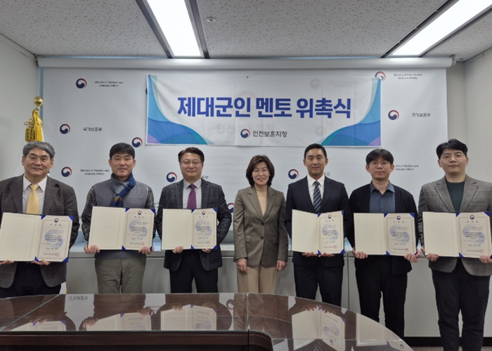 [뉴스노크=김인호 기자] 국가보훈부 인천보훈지청 제대군인지원센터는 2월 10일 정부인천지방합동청사에서 먼저 사회에 진출하여 성공한 제대군인을 분야별로 멘토로 선정하는 “2026년 제대군인 멘토 위촉식 및 간담회”를 진행했다.