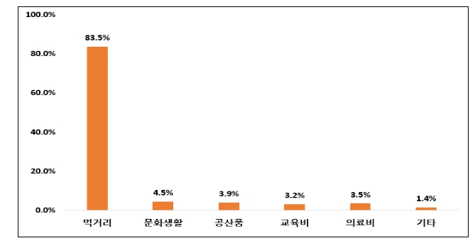 조사 결과, 응답자의 83.5%가 먹거리 구매에 소비쿠폰을 사용할 계획이라고 답했다. 코로나19 재난지원금 지급 당시(약 60.0%)보다 20.0%포인트 이상 증가한 수치다.