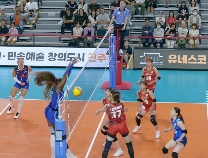 [뉴스노크=김인호 기자] 진주시 실내체육관에서 12일 오후 1시 ‘2025 코리아 인비테이셔널 진주국제여자배구대회’의 첫 경기가 일본과 프랑스의 맞대결로 화려하게 막을 올렸다.