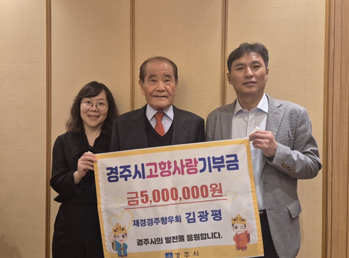 김광평 상임고문은 “고향사랑기부금이 경주의 뜻깊은 곳에 사용되어 경주 발전에 조금이나마 기여할 수 있으면 좋겠다”며 “이 기부가 지역사회에 긍정적인 변화를 가져오고 더 많은 사람들이 고향에 대한 사랑을 실천할 수 있는 계기가 되길 바란다” 고 말했다.