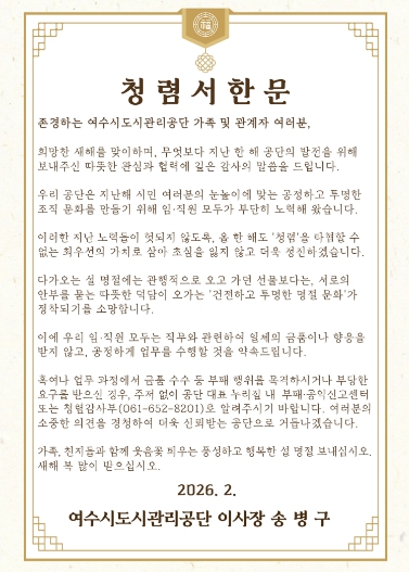 | ▲ 여수시도시관리공단, 설 명절 앞두고 ‘청렴서한문’ 발송 |
