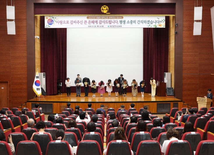 2025년 8월말 퇴직 교육공무원 정부포상 대상자는 모두 304명으로, ▲대구감천초등학교 교장 곽희성 등 10명에게 황조근정훈장, ▲대구성남초등학교 교장 구나경 등 87명에게 홍조근정훈장, ▲원화여자고등학교 교장 강영훈 등 55명에게 녹조근정훈장, ▲대구송정초등학교 교감 권경임 등 97명에게 옥조근정훈장, ▲대구반야월초등학교 교감 구윤화 등 37명에게 근정포장, ▲대구부계초등학교 교감 김연우 등 3명에게 대통령표창, ▲경일여자고등학교 교감 곽근혜 등 2명에게 국무총리표창, ▲대구태현초등학교 교감 강성희 등 13명에게 교육부장관표창을 각각 전수한다.