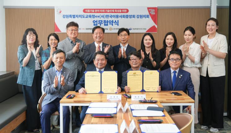 [뉴스노크=김인호 기자] 강원특별자치도교육청은 27일 오후 1시 강원특별자치도교육청 접견실에서 (사)한국이용사회중앙회 강원지회와 ’이용기술 인재 육성을 위한 업무협약식을 개최했다.