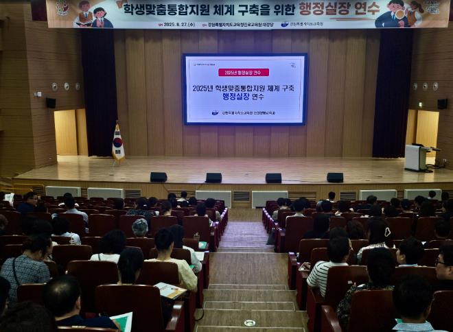 [뉴스노크=김인호 기자] 강원특별자치도교육청은 8월 27일 13시 진로교육원 대강당에서 도내 초·중·고·특수학교 행정실장을 대상으로 ‘2025년 학생맞춤통합지원 체계 구축 역량강화 연수’를 실시한다.