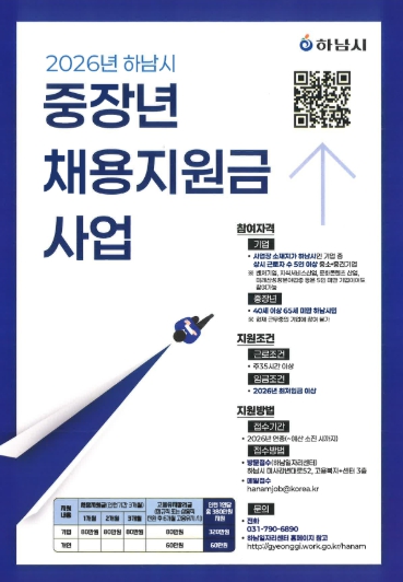 [뉴스노크=김인호 기자] 하남시가 지역 내 중장년 구직자의 재취업을 돕고 중소기업의 인력난을 해소하기 위해 ‘2026년 중장년 채용지원금 사업’을 본격적으로 추진한다고 밝혔다.