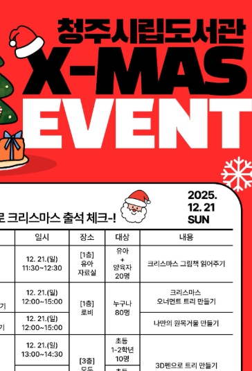 | ▲ 청주시립도서관, 크리스마스 특집 특별 프로그램 |