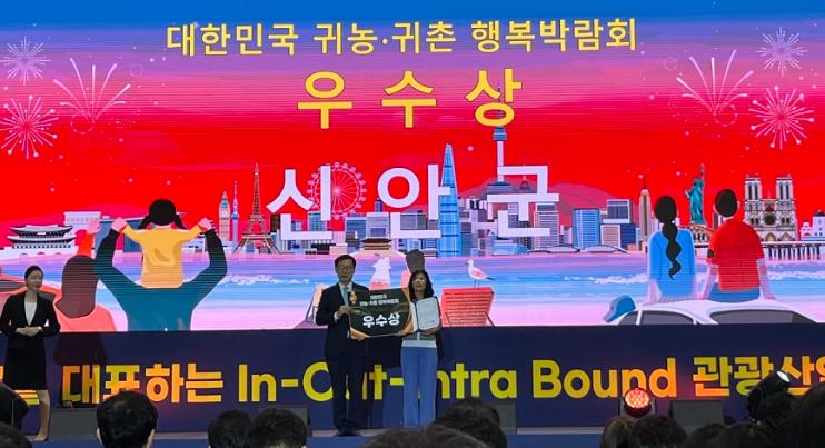 ▲ ㈜한국전시산업원이 주관하는 ‘2025 대한민국 귀농·귀촌 행복박람회’에서 신안군이 우수상을 수상했다. |