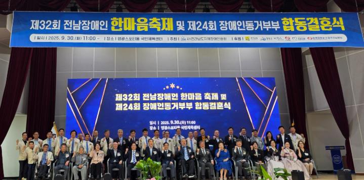 [뉴스노크=김인호 기자] 전라남도는 지난 9월 30일 영광스포티움국민체육센터에서 제32회 전남장애인한마음축제와 제24회 장애인동거부부 합동결혼식을 성황리에 개최했다고 밝혔다.
