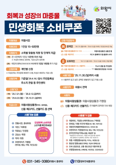 김성제 의왕시장은 “시민들이 빠짐없이 소비쿠폰을 받을 수 있도록 적극적인 안내와 신속한 지급에 총력을 다하겠다”고 전했다.