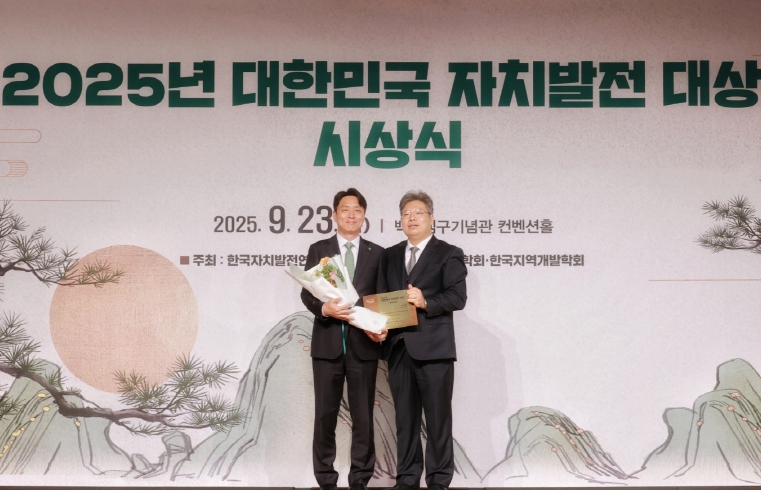 ▲ 2025년 대한민국 자치발전 시상식에서 영예의 대상 수상 |