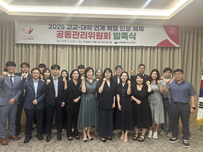 [뉴스노크=김인호 기자] 강원특별자치도교육청은 7월 9일, 2025년 고교학점제 전면 시행에 발맞춰 도내 11개 대학과 함께 ‘고교-대학 연계 학점 인정 체제 구축을 위한 공동관리위원회’를 공식 발족했다고 밝혔다.