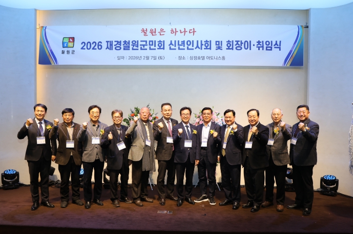 [뉴스노크=김인호 기자] 철원군은 2월 7일 오후 6시 서울 삼정호텔에서 열린 '2026년 재경철원군민회 이취임식 및 신년인사회'에 참석해 재경철원군민회의 새 출발을 축하하고, 철원군과 수도권 향우 간 상생 협력 강화 의지를 밝혔다.