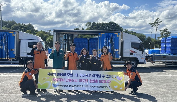 [뉴스노크=김인호 기자] 강릉시의 가뭄 상황 극복을 돕고자 양평소방서·양평의용소방대연합회·양평소방정책자문위원회 일동은 23일 강릉시에 생수(2L) 9,840병을 기탁했다.