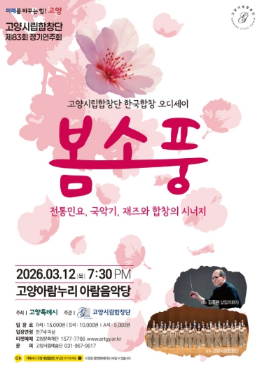 [뉴스노크=김인호 기자] 고양특례시를 대표하는 문화사절단인 고양시립합창단이 오는 3월 12일 저녁 7시 30분, 고양아람누리 아람음악당에서 제83회 정기연주회 ‘한국합창 오디세이: 봄소풍’을 개최한다.