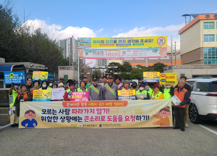 [뉴스노크=김인호 기자] 청주시는 20일 청원구 주중초등학교 일원에서 어린이 등하굣길 안전 확보를 위한 ‘어린이 약취·유인 예방 캠페인’을 실시했다.