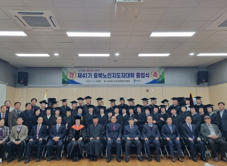 [뉴스노크=김인호 기자] 대한노인회 충청북도연합회(회장 이명식) 부설 충북노인지도자대학 제41기 졸업식이 20일 도연합회 소강당에서 열렸다.