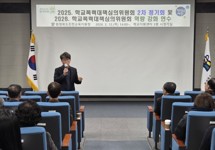 [뉴스노크=김인호 기자] 충청북도진천교육지원청은 지난 2월 12일, 학교폭력대책심의위원회 위원 36명을 대상으로‘2025학년도 하반기 학교폭력대책심의위원회 운영 결과 보고 및 2026. 학교폭력대책심의위원회 역량 강화 연수’를 실시했다.