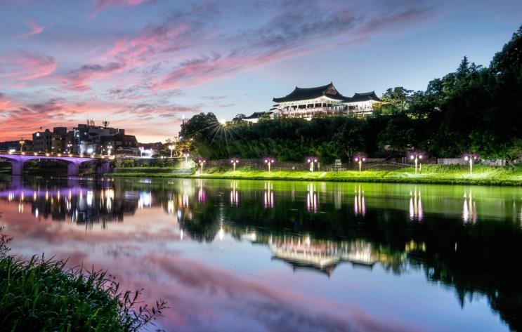 영남루는 조선시대 대표 누각으로, 야간에는 건너편 밀양강 둔치에서 조명이 비친 누각을 조망하는 것이 매우 아름답다.