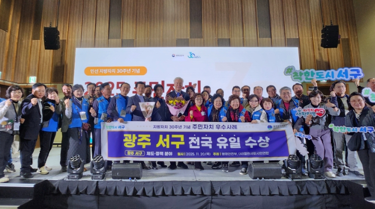 [뉴스노크=김인호 기자] 광주광역시 서구가 마을 중심의 자치행정을 실현한 성과를 인정받아 행정안전부가 주관한 지방자치 30주년 기념 공모전에서 전국 기초자치단체 중 유일하게 2관왕에 올랐다. 서구는 20일 울산전시컨벤션센터에서 열린 주민자치 우수사례 공모전에서 풍암동 BI사업(주민자치 분야)과 거점-연계동 협력 시스템(제도정책 분야) 두 개 분야에서 모두 행정안전부장관상을 수상하며 총 특별교부세 1억5천만원을 확보했다.