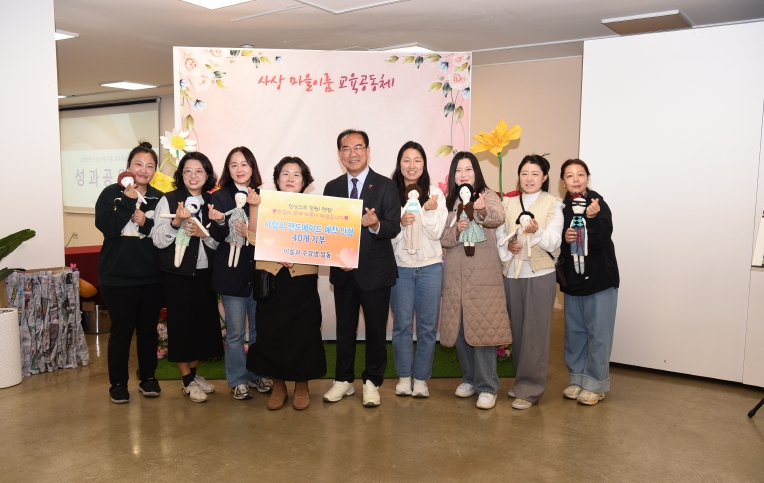 [뉴스노크=김인호 기자] 부산 사상구는 사상 마을이룸 교육공동체 ‘이쑴’(대표 신미자)과 수강생들이 지난 21일 공간523에서 지역 아동을 위해 직접 제작한 애착인형 40개를 사상구청에 기부하며 전달식을 진행했다고 밝혔다.