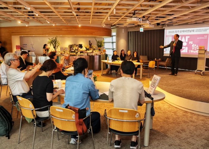 서울지역 주요 신문‧방송‧통신사 기자단, 주‧월‧계간 문화전문지를 대상으로 한 이날 행사에서 조직위는 ‘세상 짓기 Re_Crafting Tomorrow’를 주제로 진행되는 2025 청주공예비엔날레 추진 상황을 브리핑했다. 전시, 학술, 열린 비엔날레 각 분야의 정밀 설계도를 공개하며 기대감을 높였다.
