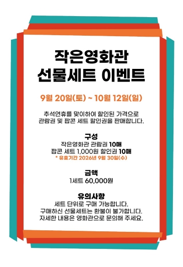 [뉴스노크=김인호 기자] 성주별고을시네마(창의문화센터 3층)는 민족 대명절 추석을 맞아 9월 20일부터 10월 12일까지 ‘추석맞이 선물세트 이벤트’를 진행한다.