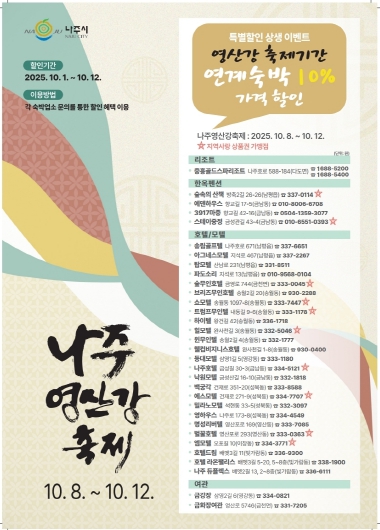 ▲ 나주시가 ‘2025 나주영산강축제’를 맞아 지역 숙박업소와 함께 특별할인 상생 이벤트를 진행한다 |