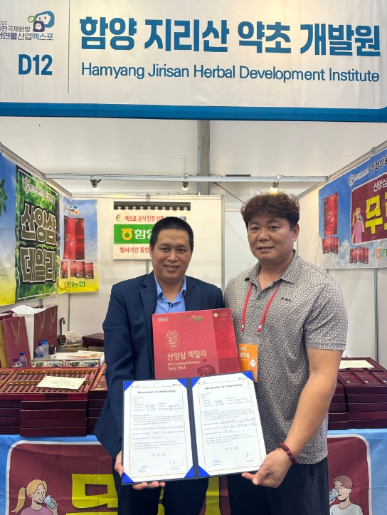 [뉴스노크=김인호 기자] 경남 함양농협에서 운영하는 지리산약초개발원이 2025제천국제한방천연물산업엑스포에서 해외 기업과 연달아 수출협약을 체결하며 주목받고 있다.