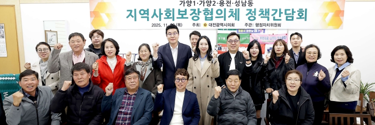 [뉴스노크=김인호 기자] 대전시의회 행정자치위원회 정명국 위원장(국민의힘, 동구 3)은 20일 시의회 행정자치위원장실에서 ‘가양1·가양2·용전·성남동 지역사회보장협의체 정책간담회’를 개최하고 협의체 운영 현황과 현장 애로사항을 청취했다.