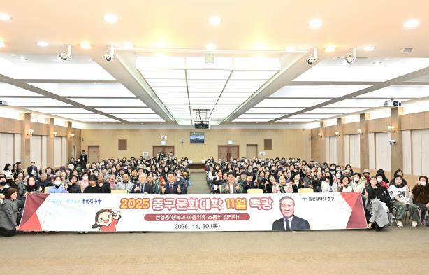 [뉴스노크=김인호 기자] 울산 중구가 11월 20일 오후 1시 30분 중구청 대회의실에서 2025년 중구문화대학 11월 주민특강을 개최했다.