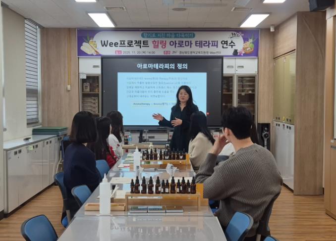 이번 연수는 전문 상담 인력의 정서적 소진을 예방하고 자기 돌봄의 기회를 제공하기 위해 마련됐으며 아로마 향기를 통한 정서 이완과 감정 인식 경험을 직접 체득하여, 상담 현장에서 학생들과의 정서 지원 활동에 활용할 수 있도록 돕는 것을 목표로 하고 있다.